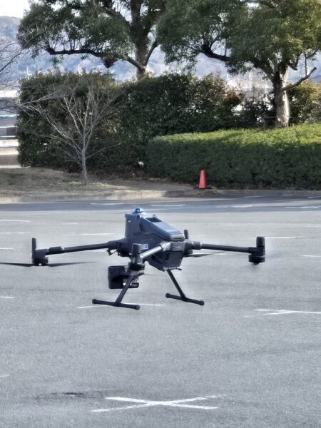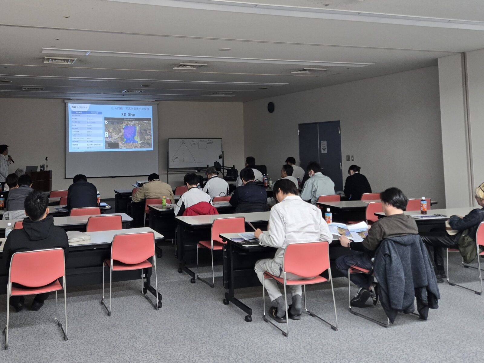 座学では最新のドローン機器について、野外では実機演習を行いました。