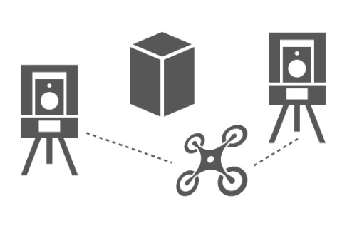 建物の表裏や曲がったトンネルなど、1台のトータルステーション(TS)でドローンを視準できない現場で威力を発揮します。